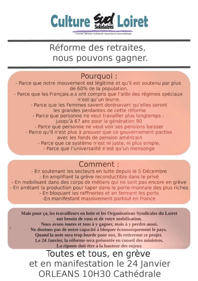 Sud Culture Loiret : Réforme des retraites, nous pouvons gagner !