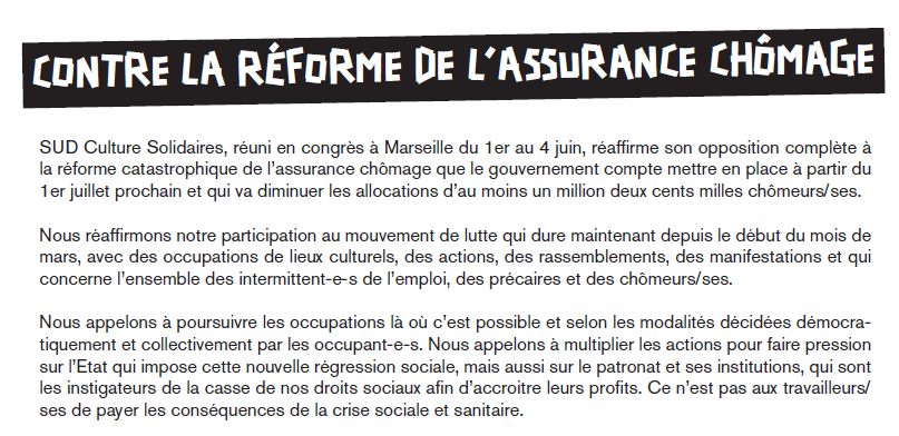 Motion d’actualité du congrès de SUD Culture Solidaires sur la lutte contre la réforme de l’assurance chômage
