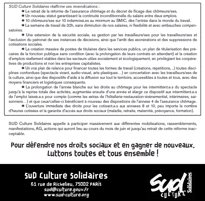 Auteur Publié le 9 juin 202120 juin 2021Catégories SUD Culture SolidairesÉtiquettes assurance chômage