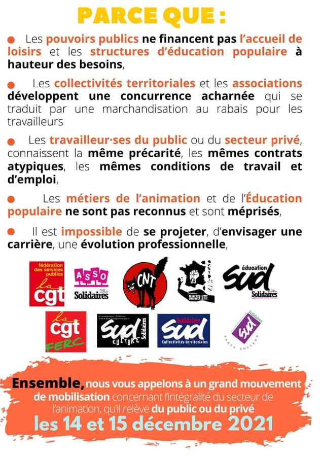 Auteur Publié le 29 novembre 202129 novembre 2021Catégories Appels unitaires, Éducation populaire, PrivéÉtiquettes animation, conditions de travail, grève