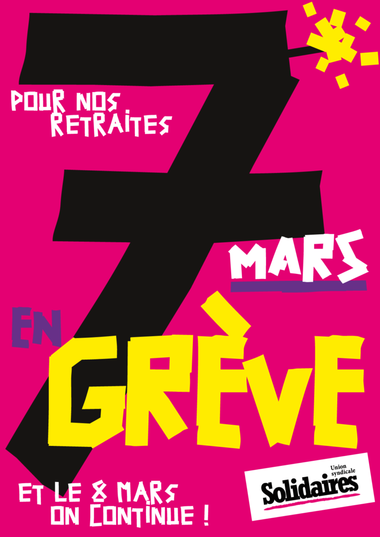 En grève le 7 mars pour nos retraites, et le 8 on continue !