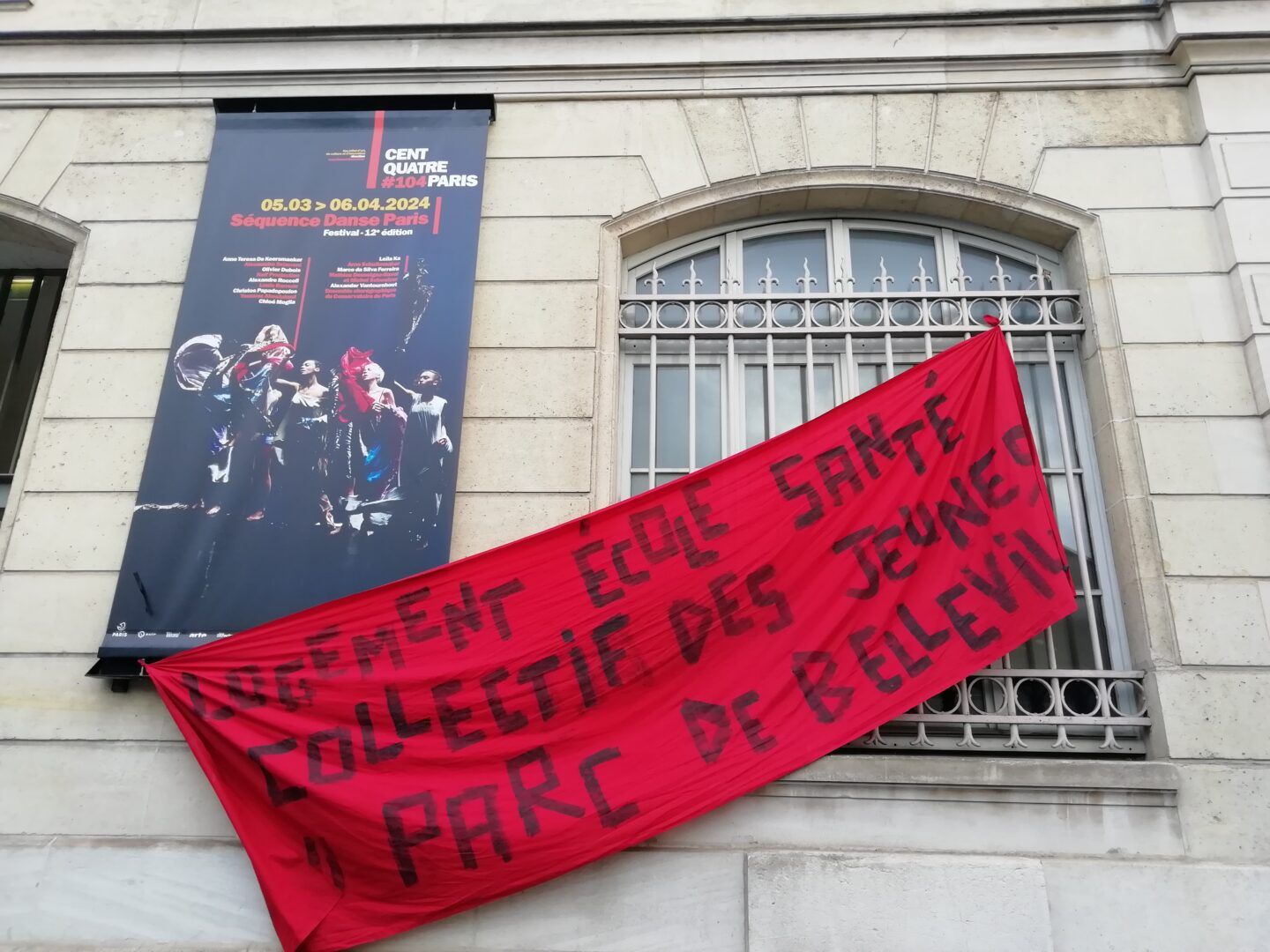 Depuis le samedi 9 mars, le collectif des jeunes du parc de Belleville et le collectif Paris 20e solidaire occupent le Cent-Quatre pour exiger un hébergement pour tous les mineurs isolés.