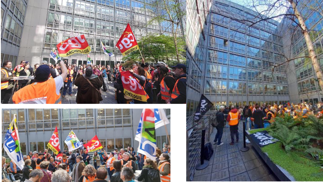 Une délégation de 8 représentants des personnels a été reçue par le directeur général des Patrimoine, le sous-directeur de l’Archéologie, le chef du service patrimoine et la sous-directrice des affaires financières et générales. Cet entretien a duré environ 1h30.