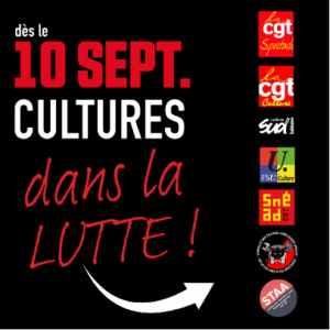 Car, si le sort de François Bayrou et de l’équipe gouvernementale semble aujourd’hui scellé, la situation sociale ne va pas s’arranger pour autant. Leur chute ne suffira pas à faire annuler l’ensemble des plans d’austérité que subit le secteur culturel, qu’ils émanent de l’Etat ou des collectivités territoriales, ni les projets de réforme visant à casser l’assurance chômage, l’assurance maladie, nos retraites, nos salaires et l’audiovisuel public.