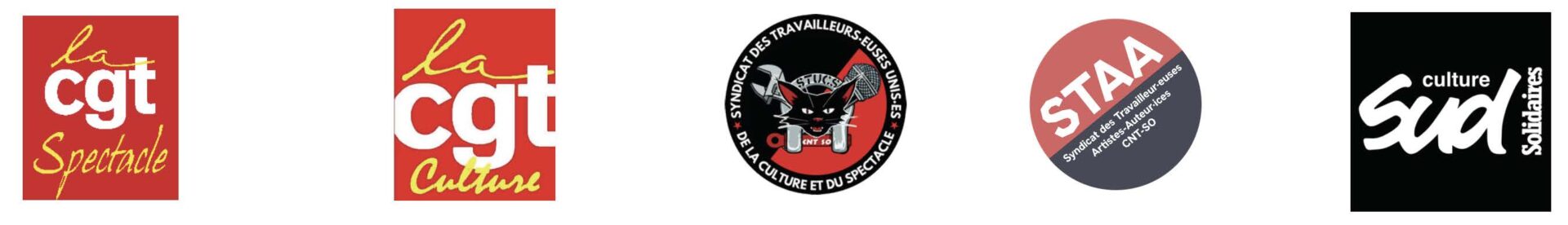 CGT Spectacle, CGT Culture, STAA – Syndicat des Travailleur·euses Artistes-Auteur·ices – CNT-SO, STUCS – Syndicat des Travailleurs.euses Uni.es de la Culture et du Spectacle – CNT SO, SUD Culture Solidaires