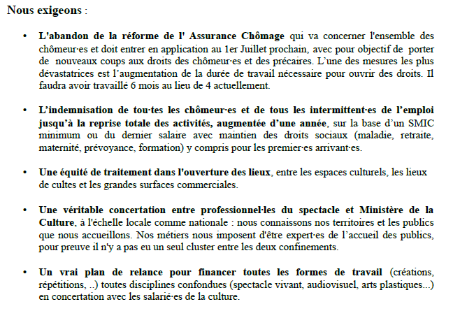 Auteur Publié le 16 mars 202116 mars 2021Catégories Appels unitaires, Privé, Spectacle vivantÉtiquettes assurance chômage, droits sociaux, mobilisation