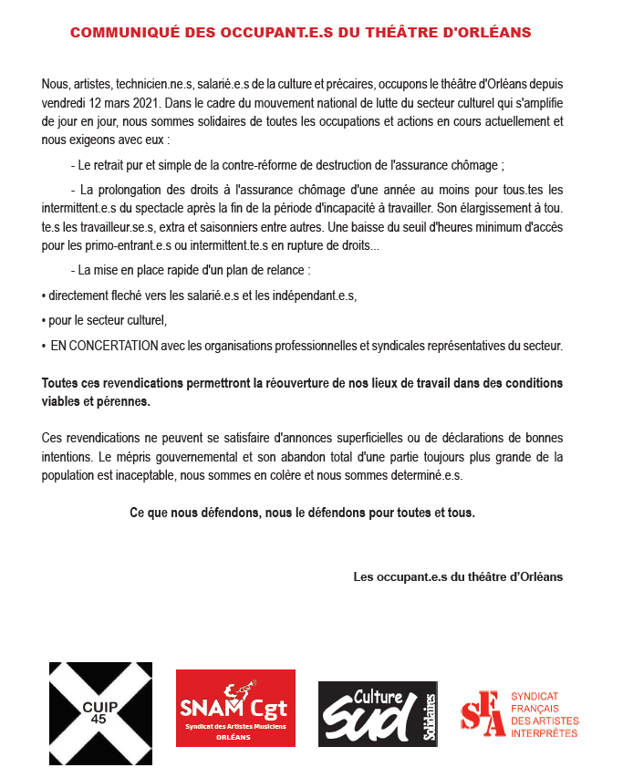 Communiqué des occupant.es du théâtre d’Orléans
