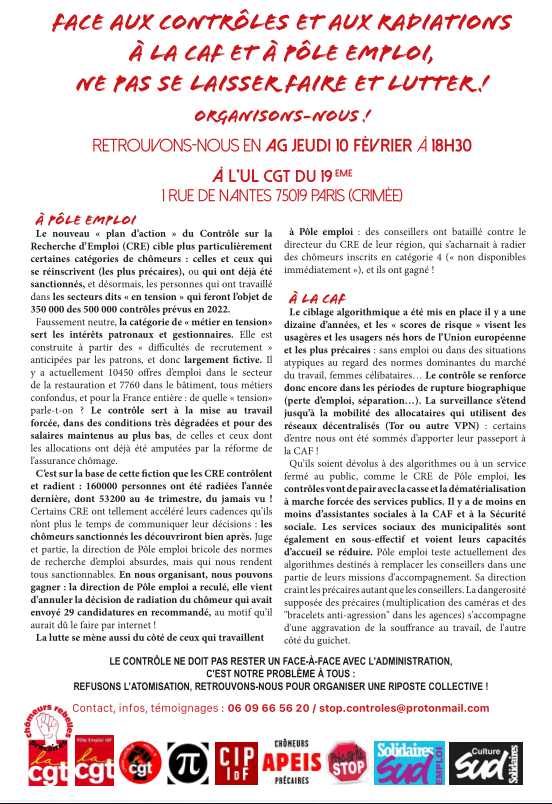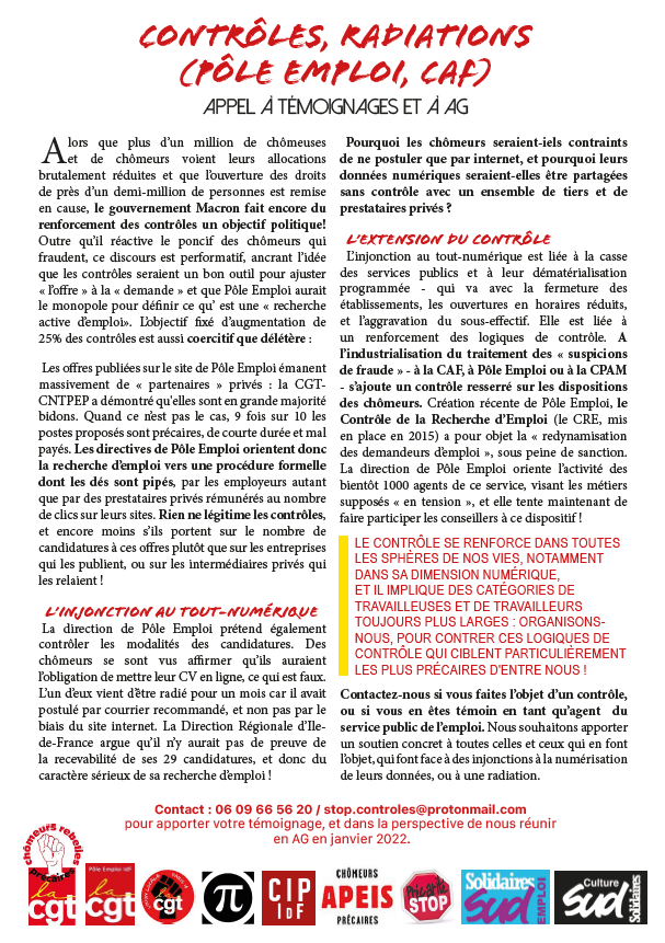 Face aux contrôles et aux radiations à la CAF et à Pôle Emploi, ne pas laisser faire et lutter