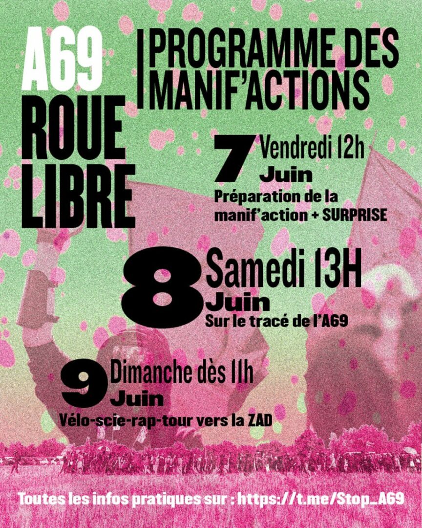 Continuer la lecture de « 7-8-9 juin : A69 – roue libre – manif’actions et mobilisation inter-nationale contre les projets autoroutiers »