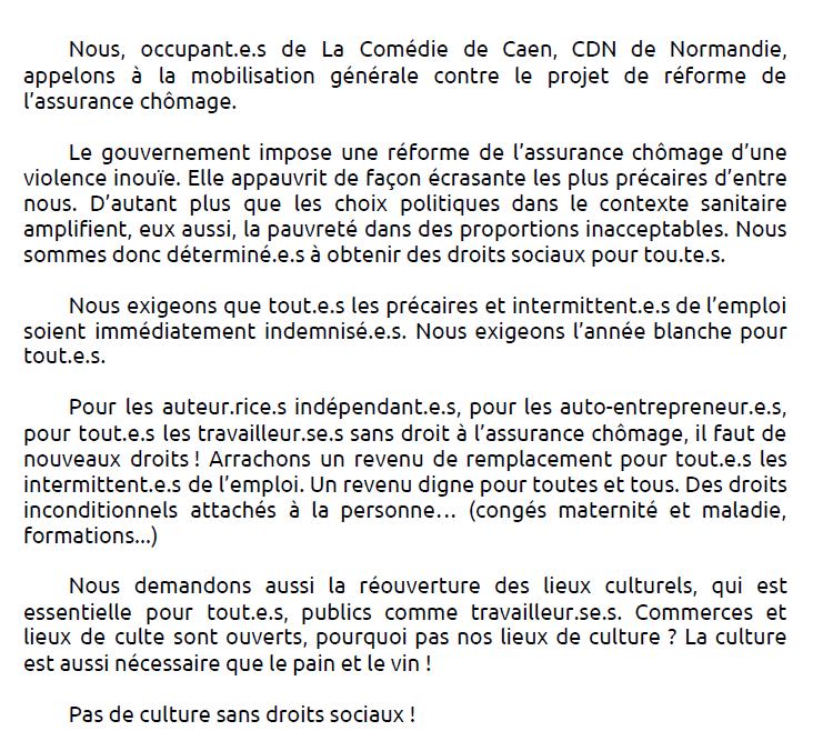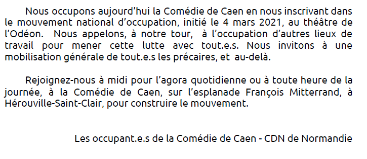 Communiqué des occupant.es du théâtre de Caen