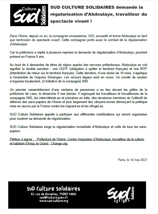 Après plus de deux ans de combat, Jamila A. a remporté son prud’homme contre le Studio théâtre de Stains. A l’été 2020, Jamila A. – qui travaillait à la fois à l’administration du théâtre et sur scène – avait été écartée de toutes les pièces où elle était prévue, alors qu’elle était enceinte. Les prud’hommes ont reconnu une discrimination fondée sur sa grossesse mais aussi un harcèlement moral contre elle au sein de la structure. Enfin il a été reconnu que l’employeur n’avait pas répondu à son obligation de sécurité vis-à-vis de sa salariée. Ces éléments ont amené à reconnaître comme nul le licenciement pour inaptitude prononcé en septembre 2021. Nous saluons une nouvelle fois la ténacité et le courage de Jamila, face aux dénigrements répétés à son encontre de l’administration du théâtre.