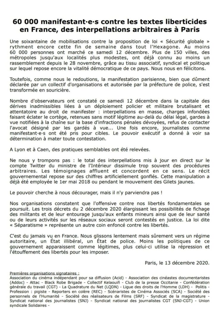 Communiqué Union syndicale Solidaires