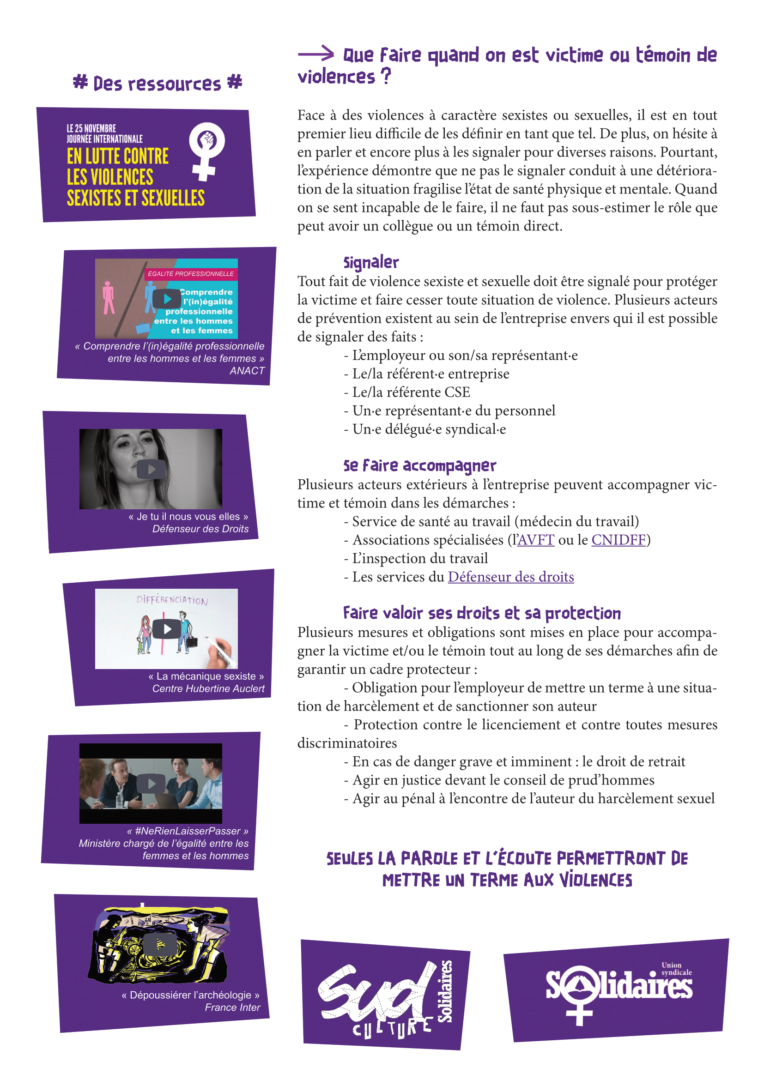 Non aux violences sexistes, non à la répression de celles et ceux qui les dénoncent ! Non aux intimidations anti-syndicales !